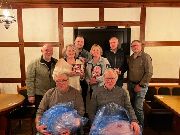 Hermann Tüpker (sitzend rechts) und Harry Mörschel (sitzend links) sind die Sieger beim diesjährigen Doppelkopf- und Knobelturnier. Hermann Tüpker siegte im Preisdoppelkopf und verwies Steffen Kenning und Karl-Heinz Kenning auf die Plätze 2 und 3. Harry Mörschel setzte sich in buchstäblich letzter Sekunde durch. Während des nahezu gesamten Abends hatte Klaudia Frehmeyer-Lagemann geführt. Dritte wurde Stephanie Schulte. Am Doppelkopf nahmen 24 Personen teil.